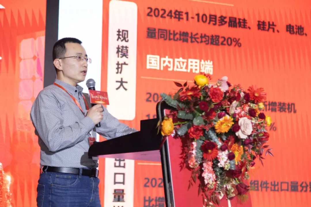 中国电力企业联合会光伏发电分会秘书长蔡义清致辞中指出,面对当前充满挑战与机遇的全新市场环境,企业和行业参与者必须精准把握趋势、有效应对变化并果断抓住机会。他的发言引发了与会者的深思和共鸣。