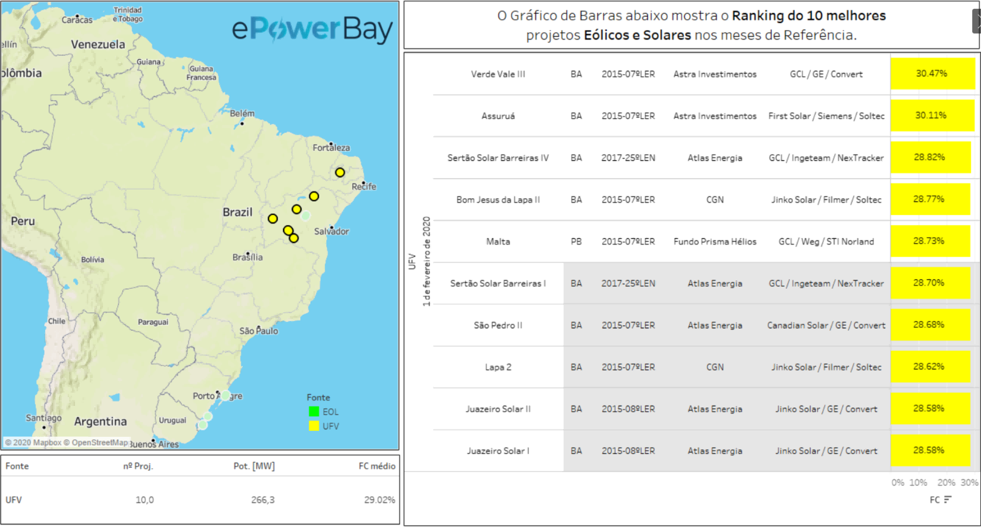 近日,国际电力行业咨询机构ePowerBay针对巴西电力能源交易商会(CCEE)发布的巴西太阳能项目运营信息整理并发布了运营排行系统。该系统突出显示了10个性能最好的电厂,其中6个最高效的太阳能电厂中,4个使用了利来集团提供的组件。