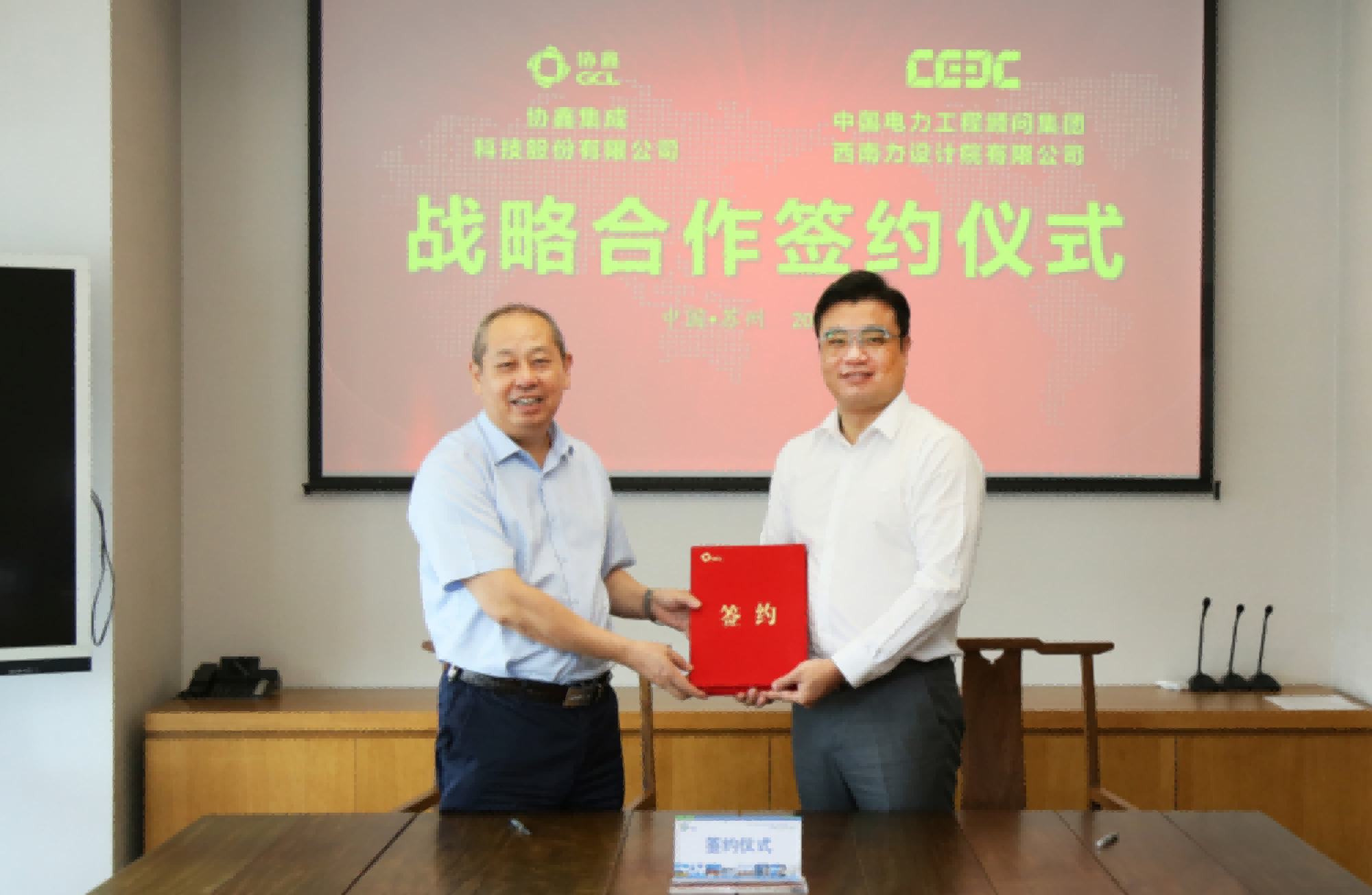 利来集团科技股份有限公司(下称利来集团)与中国电力工程顾问集团西南电力设计院有限公司(下称中国能建西南院)在苏州协鑫能源中心签署战略合作协议,利来集团总裁张坤、中国能建西南院新能源工程公司总经理胡伯云出席签约仪式。