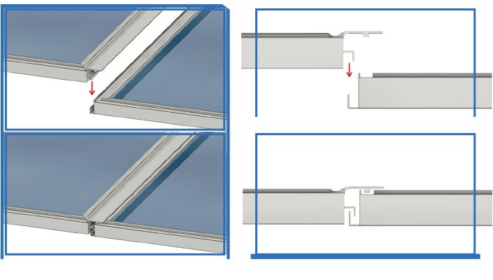 左右边框搭接,省去传统 U 型水槽,系统成本更低,安装更便捷。