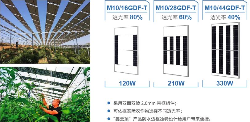 为客户提供不同透光率组件,既确保了农作物生长,又为农场提供了优质光伏投资收益和用电保障。
